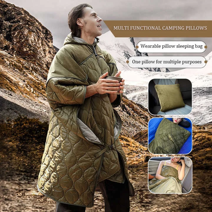 Bolsa de durmir ao aire libre de 4 en 1 para adultos, construción de fibra de fibra con tapa de algodón e forro de flanela de algodón suave para a máxima calor e confort.