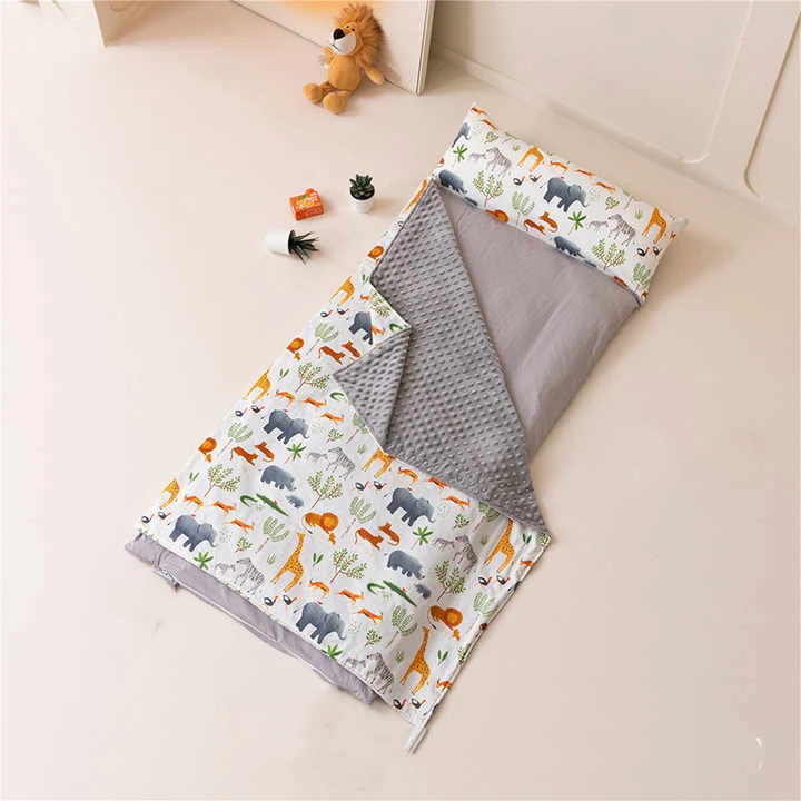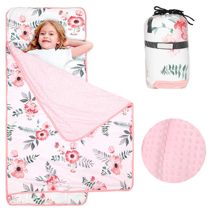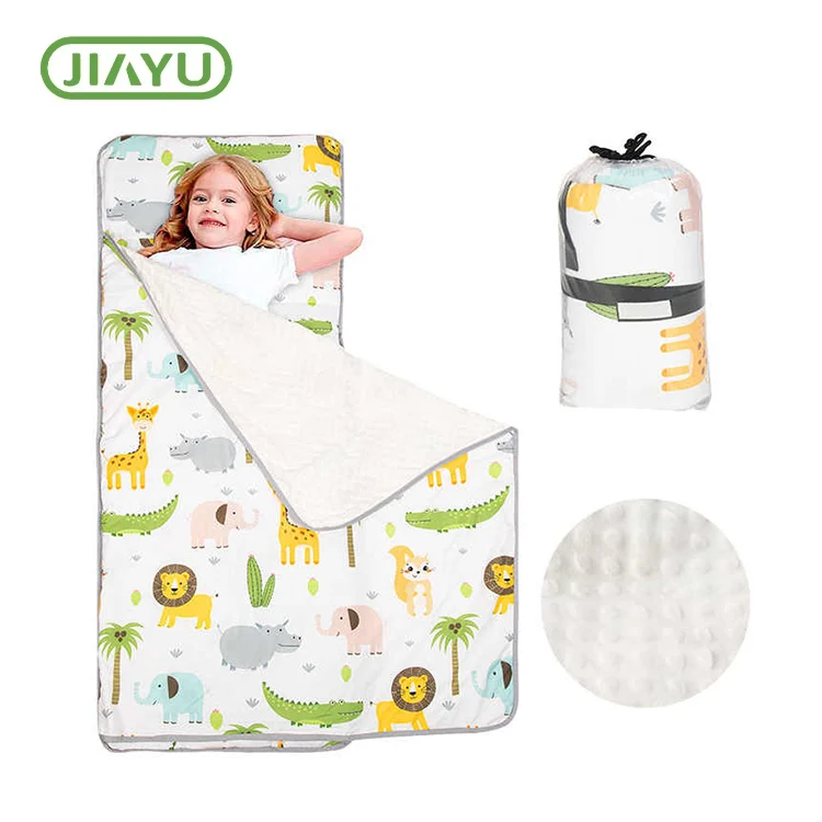 Bolsa de sesta de campamento azul do neno Azul O deseño do rollo permite que a alfombra viaxa con facilidade, así como as convenientes cintas de peche de fixación e o mango de transporte.