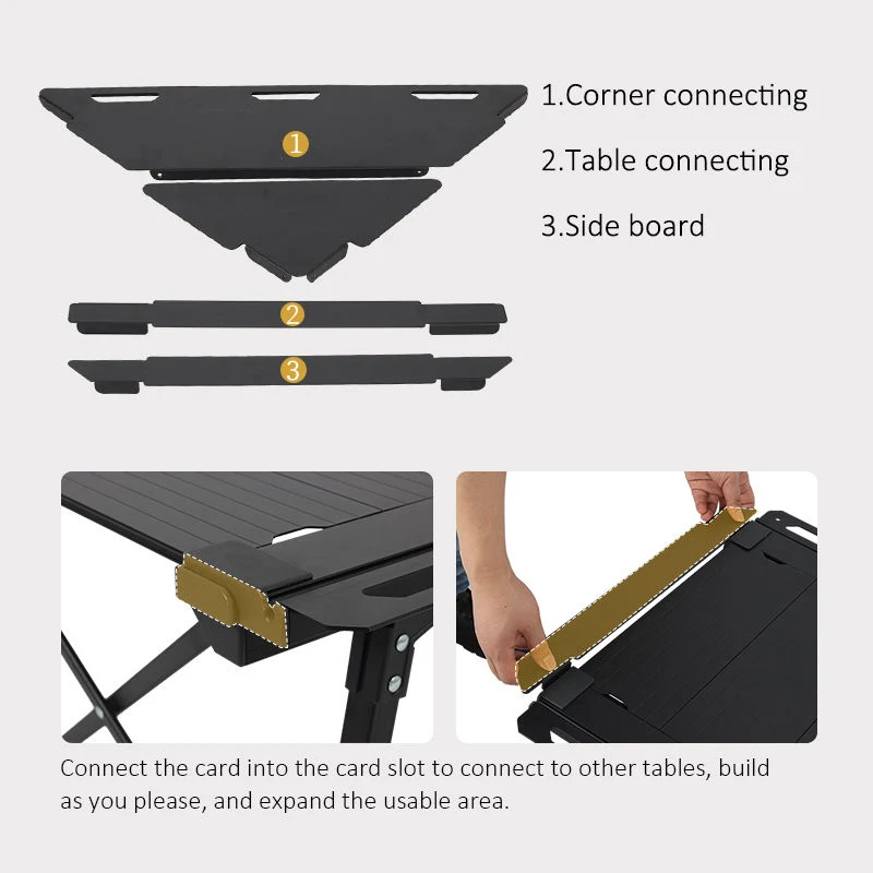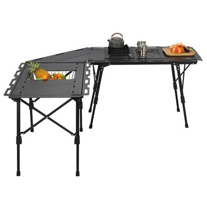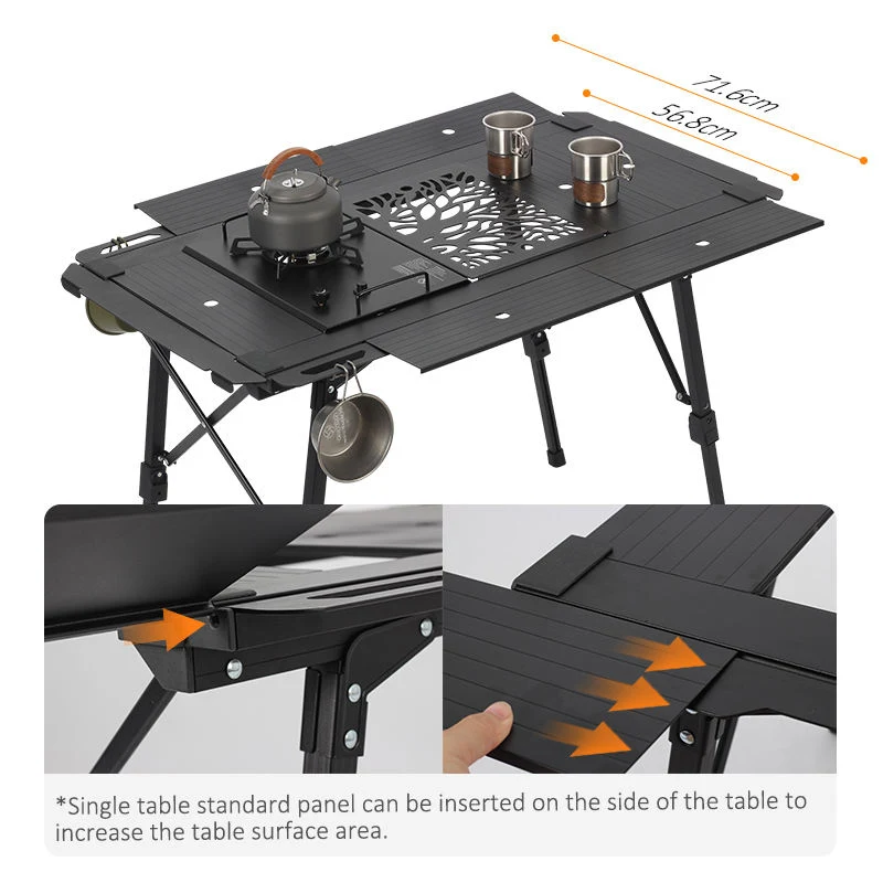 Táboa de acampada ao aire libre de aluminio doblante, tanto se estás explorando un terreo de montaña resistente como se goza dun picnic en campos de herba plana, esta mesa de acampada xestiona sen esforzo diversos retos, proporcionando apoio estable e fiable para actividades ao aire libre.