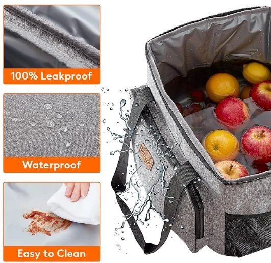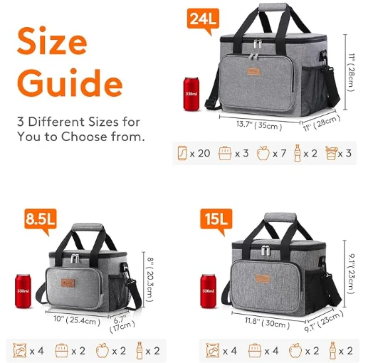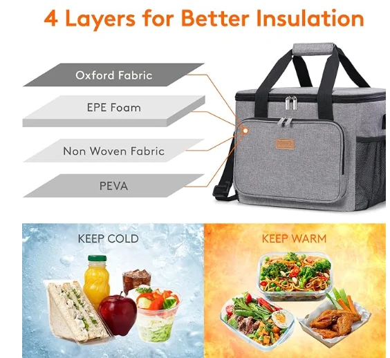 Capacidade grande: dimensións - 13,8 "(35cm) × 11" (28 cm) × 11 "(28 cm). A capacidade máxima de xantar para adultos é de 24L, e é o suficientemente amplo como para almacenar 40 latas de coque (330 ml) ou o seu xantar como sandwichs, ensaladas, lanches, bebidas e froitas.