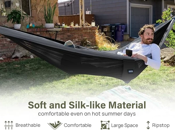 Accesorio de acampada de hamacas de acampada lixeiro para entusiastas ao aire libre que gozan de sendeirismo, acampar, viaxar, explorar e outras actividades ao aire libre. Tamén fan agasallos de acampada perfectos para calquera que ame ao aire libre. Ademais, pode ser un agasallo perfecto para ocasións especiais como aniversarios, vodas e aniversarios, día da nai, día do pai.
