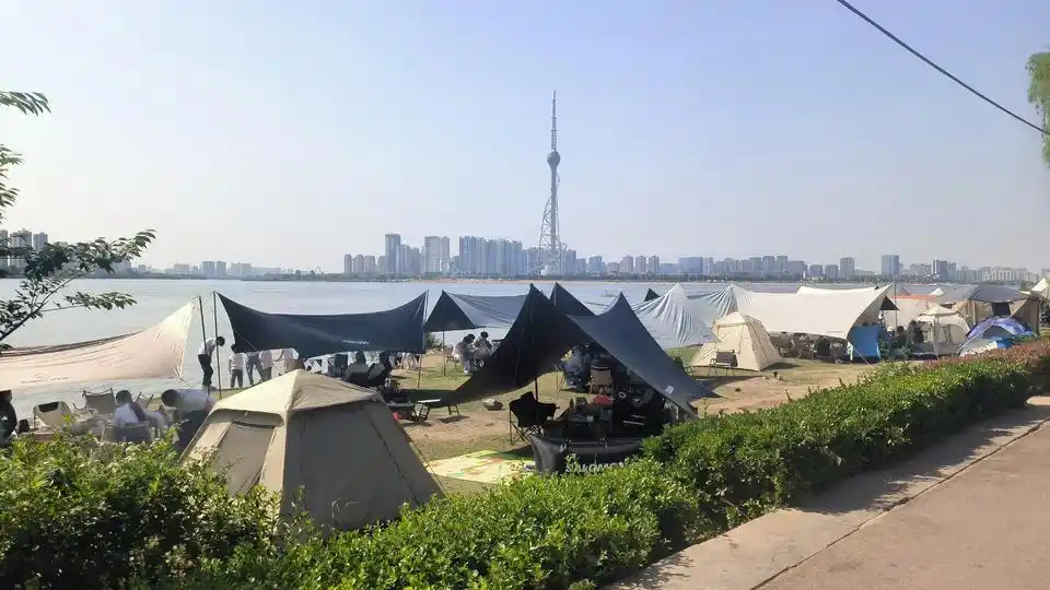 Nos últimos días, os xornalistas visitaron moitos cámpings e as tendas de cores están salpicadas na herba verde, como un fermoso cadro. Os turistas se sentan fóra das tendas de campaña, gozando dun tempo lúdico; Ou xogar cos seus fillos na herba, a risa vén unha tras outra. Debido ao aumento do fluxo de pasaxeiros, moitos cámpings teñen prazas de aparcamento axustadas, "difícil de atopar".