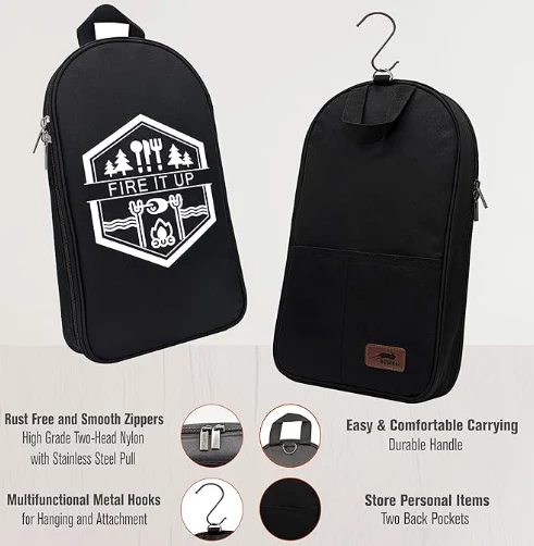 Bolsa de almacenamento de utensilios de cociña ao aire libre. A túa satisfacción é a nosa prioridade. Deseñamos meticulosamente os nosos equipos de acampada e accesorios para ser robustos e fiables, eliminando as preocupacións sobre ferramentas dobradas, rotas ou enferruxadas. Tanto se estás a acampar, ou simplemente a gozar do gran aire libre, este conxunto de utensilios de acampada é imprescindible para as túas necesidades de cociña ao aire libre.