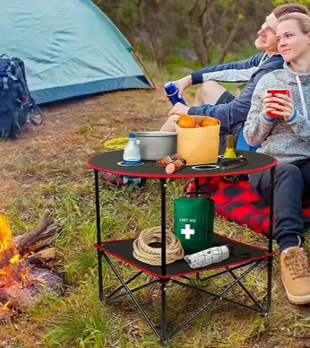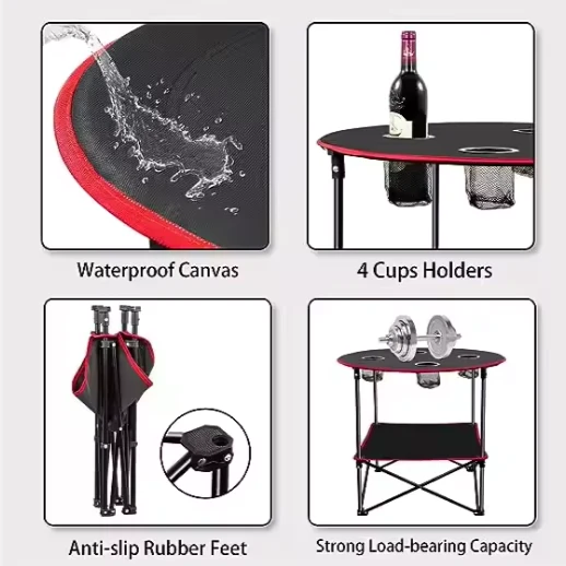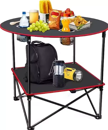 Mesa de praia de comedor ao aire libre. A mesa de lona cadrada plegable non só se pode usar en interiores, senón tamén para acampar, pescar, sendeirismo, praia, picnic, churrasco, cociña.zhejiang jiayu ao aire libre Co., Ltd., Middle for a Bowl of Popcorn, chips, mergullo ou outros lanches , teclas, etc., o que fai que o lanche durante as actividades ao aire libre sexa máis fácil e limpo. No nivel superior da táboa, hai outro nivel para o espazo extra para manter a comida.