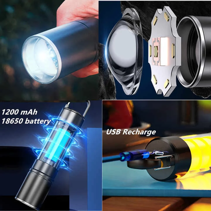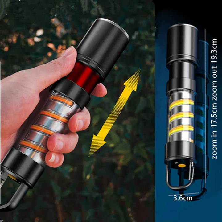 Torch de lanterna de emerxencia portátil. Luz de emerxencia para a interrupción eléctrica e as duras actividades ao aire libre. O chip de disipación de calor incorporado quentará a disipación despois de 5 minutos de uso
