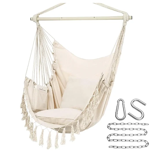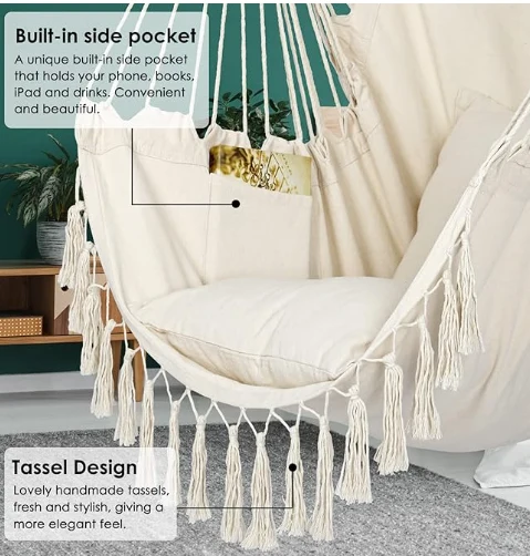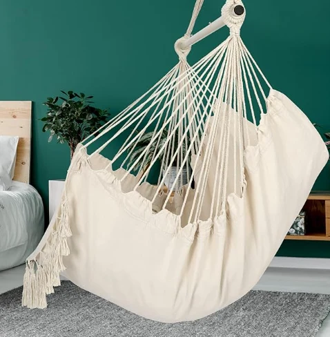 Coser hamaca de paracaídas colgando. Só tes que atopar unha rama, un feixe ou un marco de hamaca, unha gran cadeira de balance para fóra ou dentro.zhejiang jiayu Outdoor Products Co., Ltd. Poderías meditar ou gozar facilmente da paisaxe. É moi adecuado para o seu uso en dormitorios, como decoración de habitación, balcóns, patios e xardíns. Se necesitas un retorno, non elimine a etiqueta da cadeira de balance