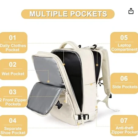 A mochila impermeable unisex. Pódese colocar no carro da maleta para facilitar a viaxe. O peto de cremalleira anti-theft escondido na parte traseira da mochila para evitar que os seus obxectos de valor sexan roubados. Teña en conta que a mochila non inclúe un banco de enerxía e un cable de datos, só para a comodidade da carga do teléfono móbil.